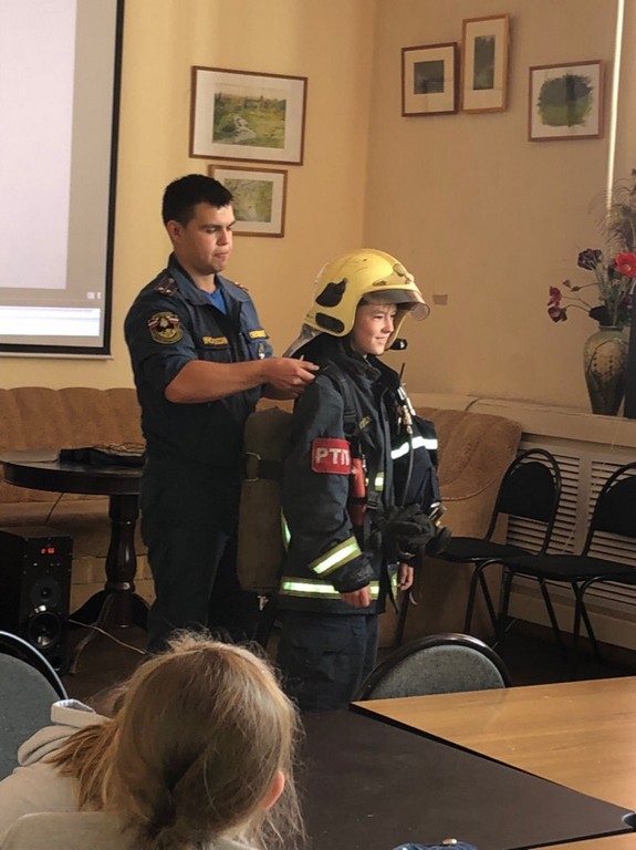 Очередное мероприятие прошло 25 июня 2019 г. в центральной библиотеке города Александрова для детей МБОУ СОШ № 14. Прежде всего, с ребятами были проведены беседы о безопасности на водных объектах и правилах пожарной безопасности. Начальник пожарной части № 17 рассказал о профессии пожарного. В конце беседы каждый смог примерить боевую одежду огнеборца.