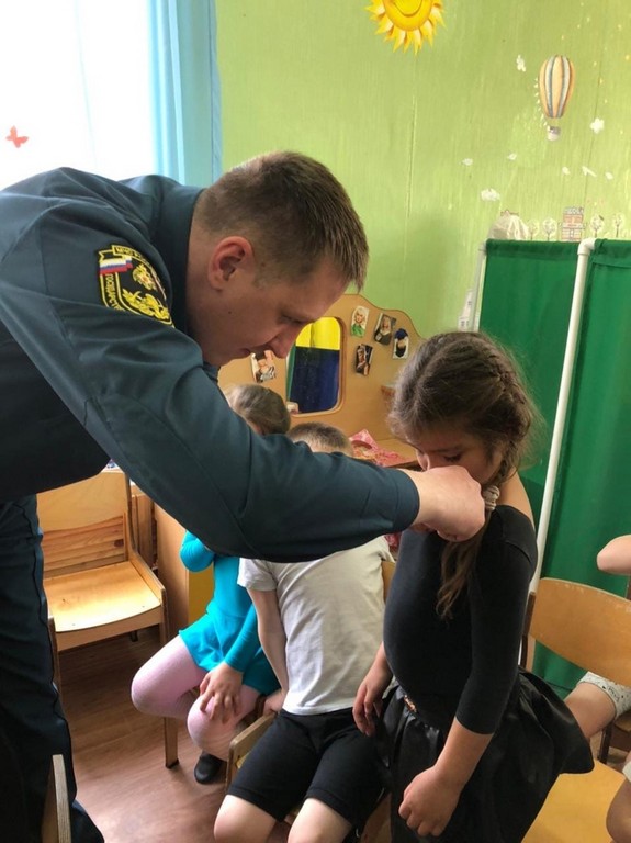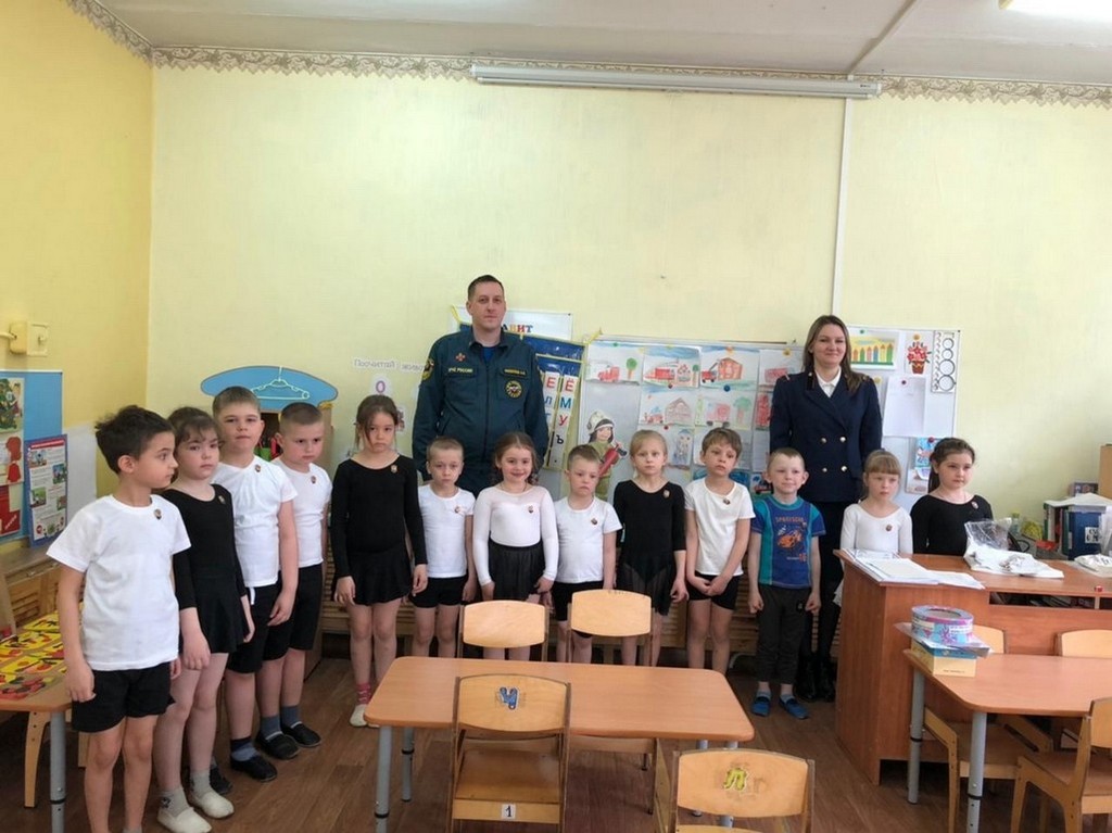 В конце занятий за активное участие каждому вручили значок юного пожарного, а воспитателям – красочные листовки для оформления стенда.